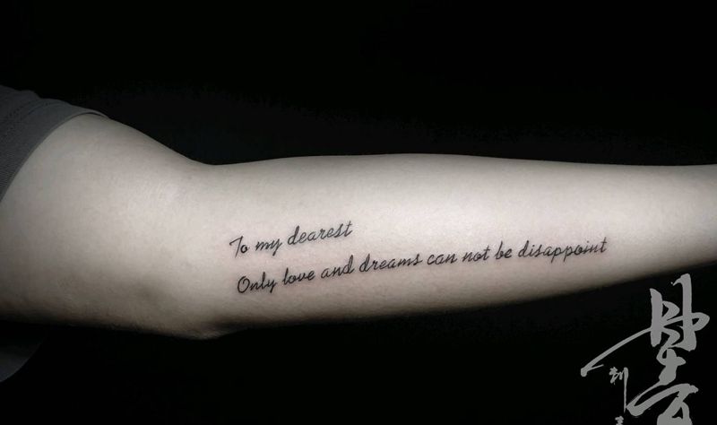当前位置: 首页 >海南省海口市纹身店-海口喜鹊刺青艺术工作室纹身图案>小英文纹身图片_手臂成品纹身图案