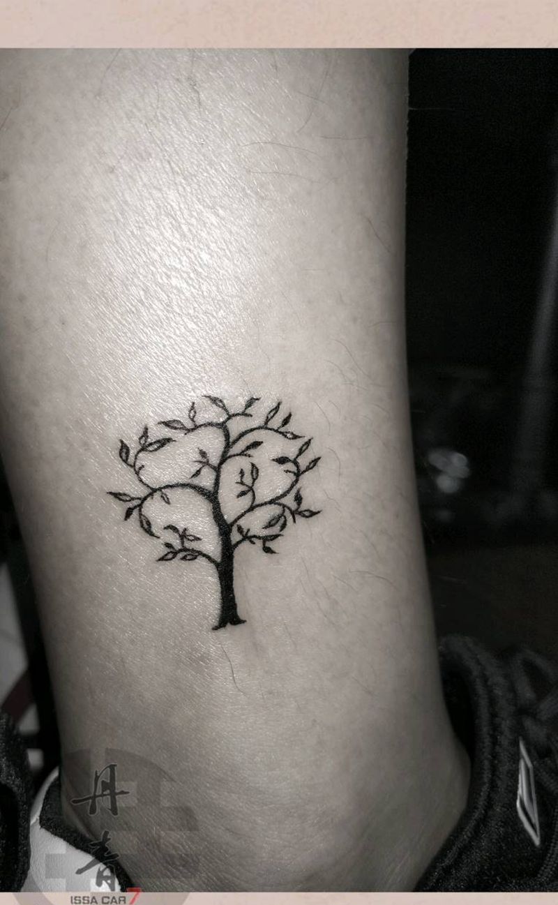 一颗开花的树纹身图片_脚部清新植物成品纹身图案