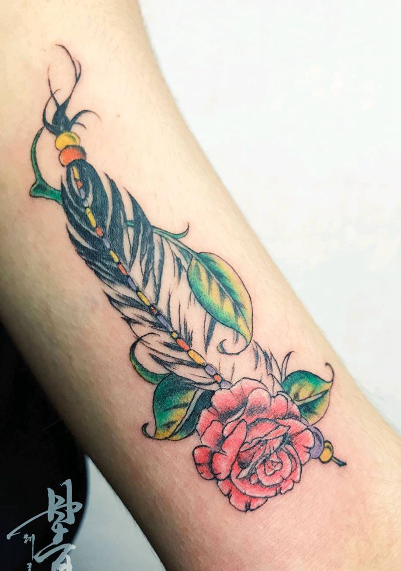 花羽毛纹身图片