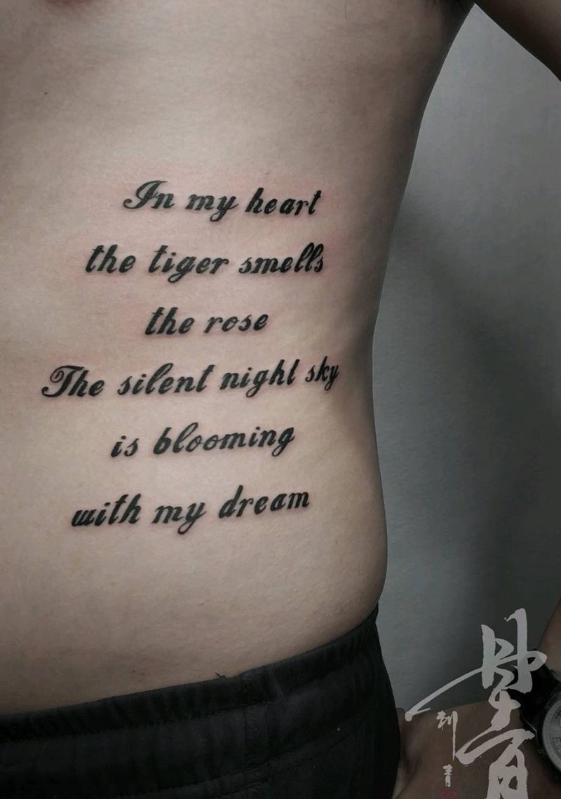 • T关于私处得爱!纹身图片_成品腹部清新字符图腾纹身图案