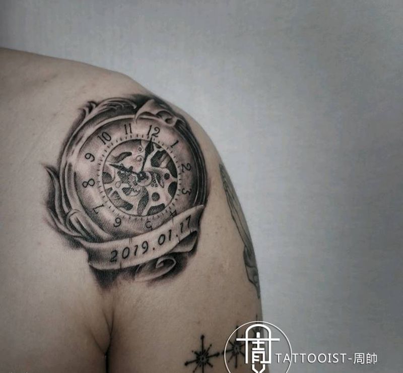 当前位置: 首页 >海南省海口市纹身店-海口喜鹊刺青艺术工作室纹身图案>写实钟表纹身图片