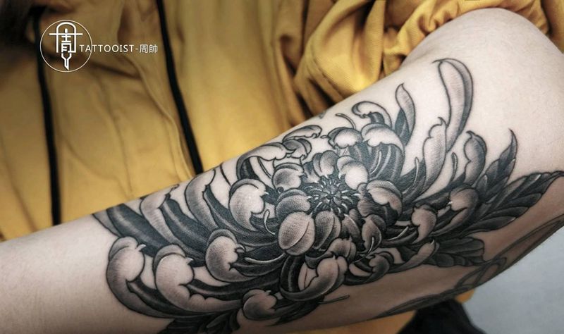 当前位置: 首页 >海南省海口市纹身店-海口喜鹊刺青艺术工作室纹身图案>传统,菊花纹身图片