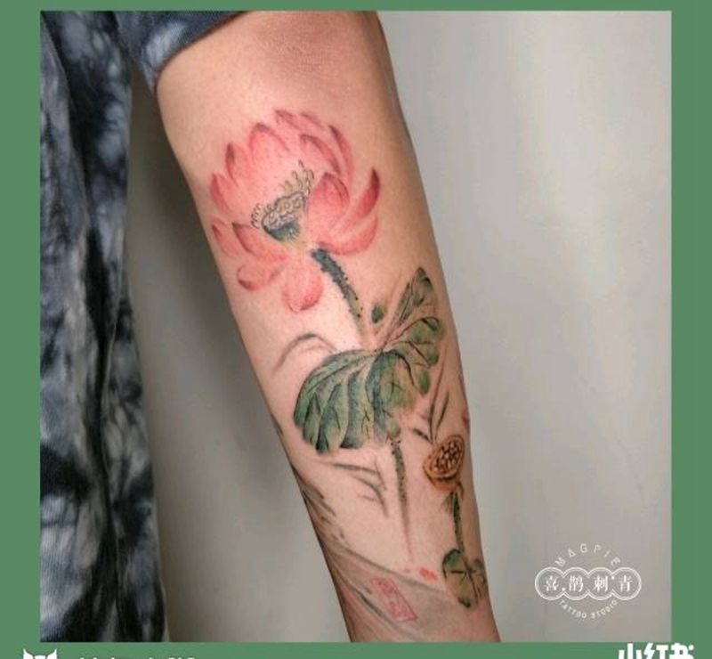 当前位置: 首页 >海南省海口市纹身店-海口喜鹊刺青艺术工作室纹身图案>荷花纹身图片_手臂纹身图案
