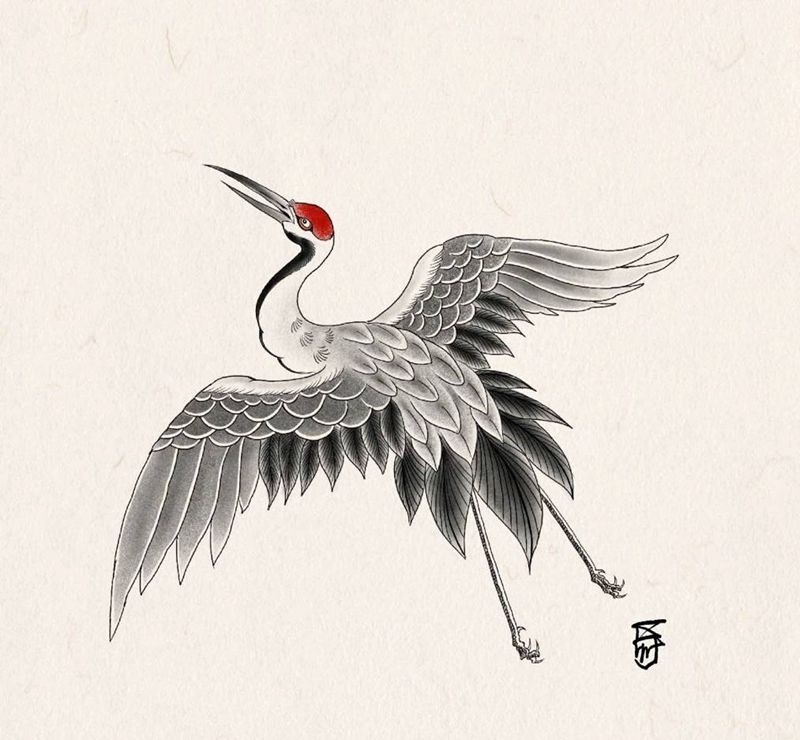 鹤,手稿1纹身图片_手臂腿部纹身图案