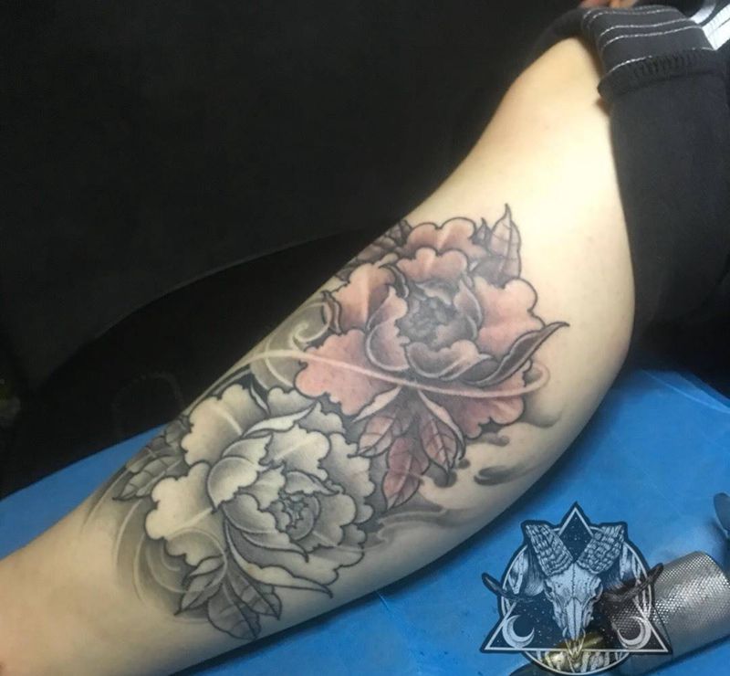 • T网红王老大花腿龙纹身图片_腿部新传统纹身图案