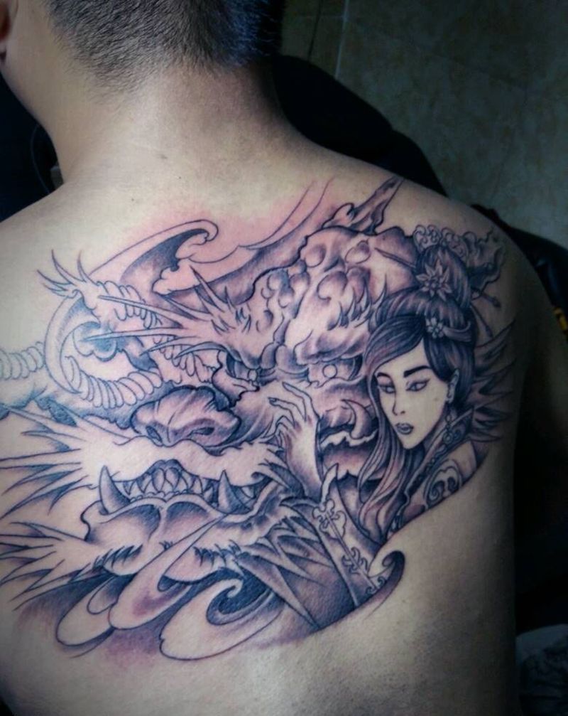 • T云龙九郎纹身图片_背部老传统云龙九郎纹身图案