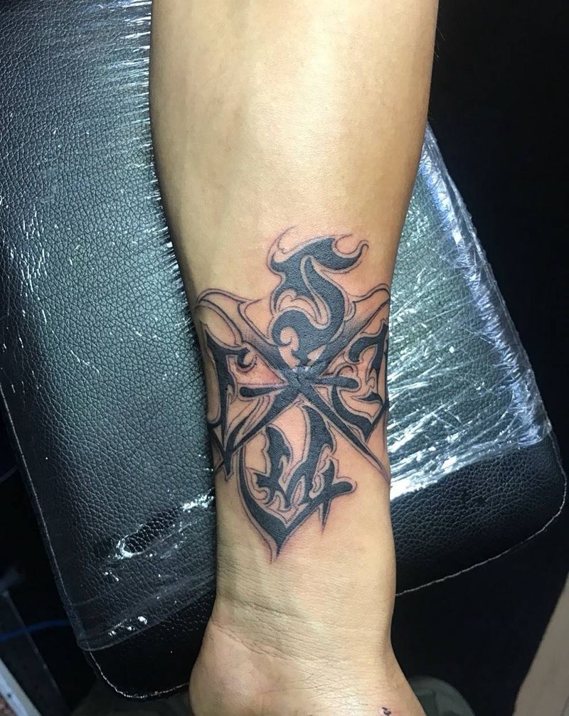 • H精美的十字架纹身图案 十字架刺青图片