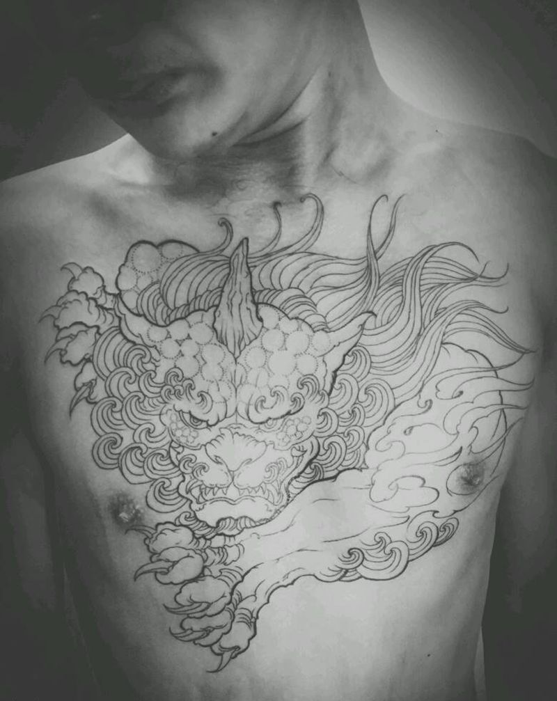 当前位置: 首页 >广西百色市纹身店-杰刺纹身纹身图案>唐狮 割线纹身图片