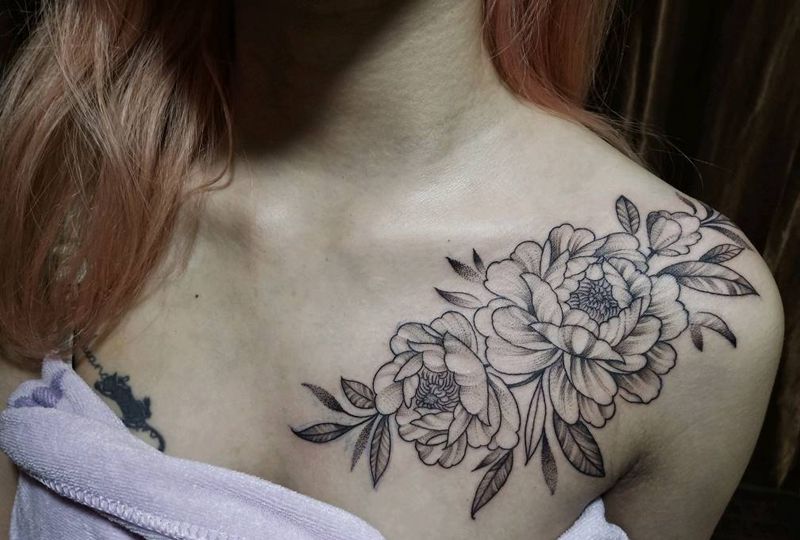• 女性大花胸纹身_43张霸气漂亮的女性大花胸纹身图案作品