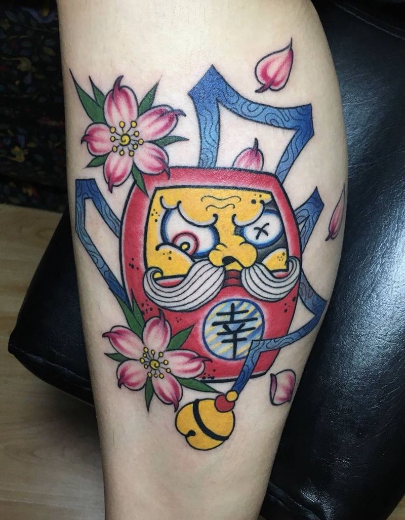 达摩纹身图片_成品腿部传统纹身图案