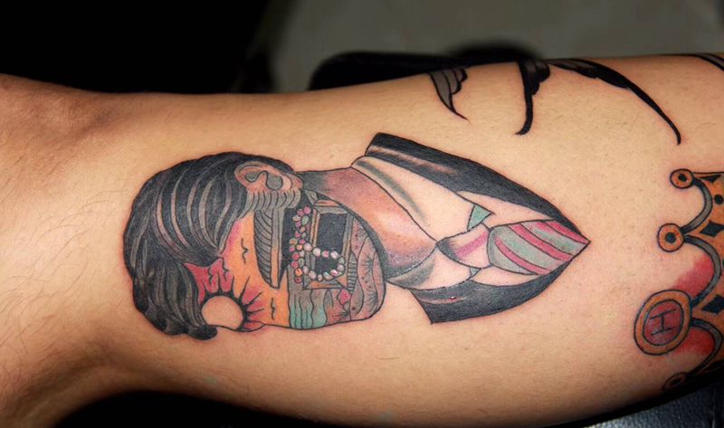 • T包小腿吹火男+阿多福纹身图片_腿部老传统新传统吹火男阿