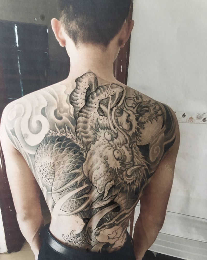 • T云龙九郎纹身图片_背部老传统云龙九郎纹身图案