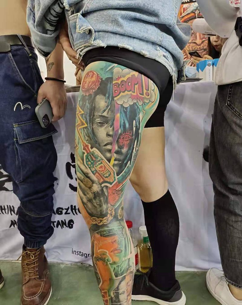 • T网红王老大花腿龙纹身图片_腿部新传统纹身图案