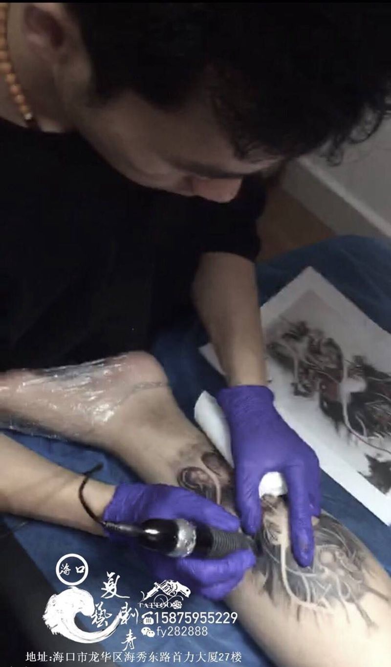 • T网红王老大花腿龙纹身图片_腿部新传统纹身图案