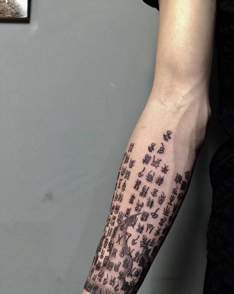 当前位置: 首页 >海南省海口市纹身店-柒刺青纹身工作室纹身图案>小篆体包小臂纹身图片