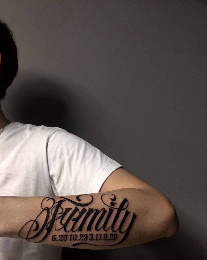 • T家庭图,一家四口生日纪念!纹身图片_手臂纹身图案