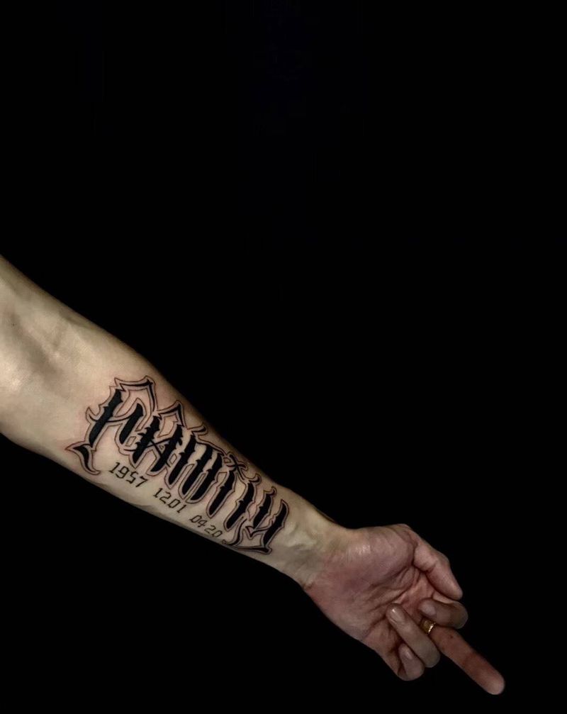 • T家庭图,一家四口生日纪念!纹身图片_手臂纹身图案