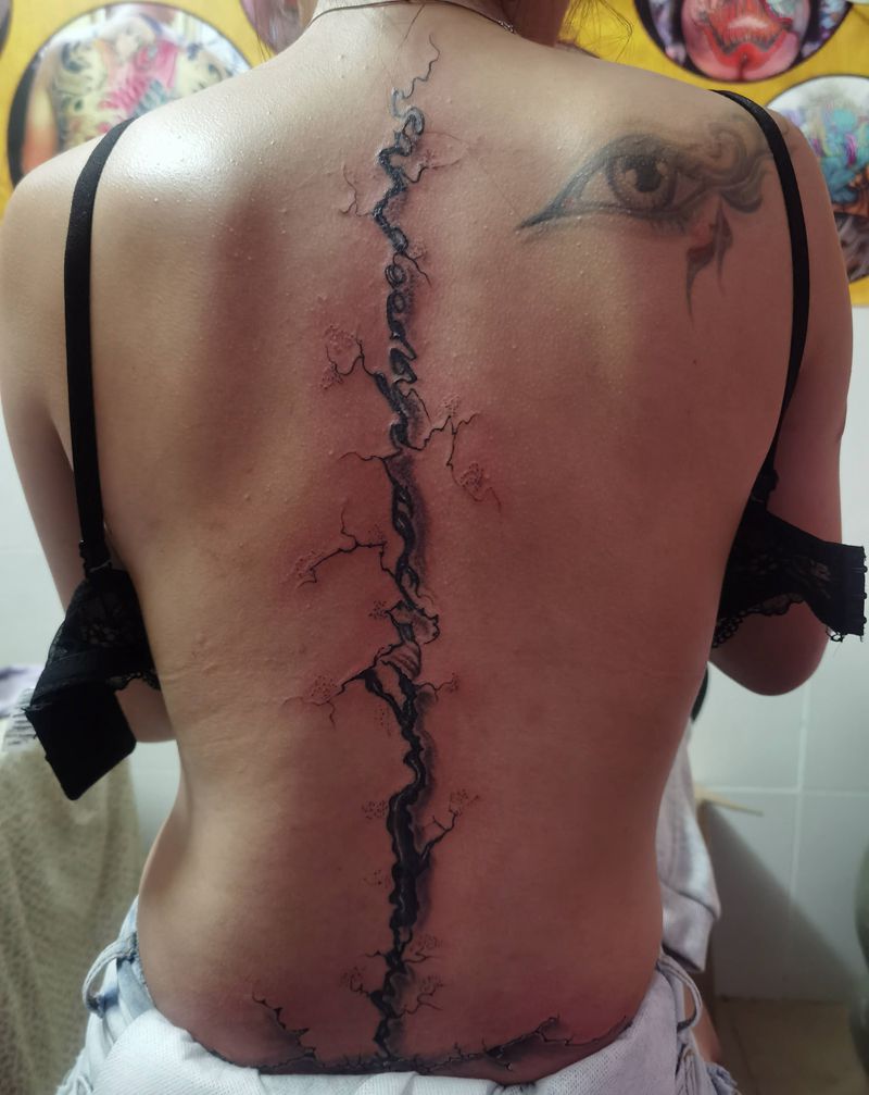 遮盖英文纹身图片_背部新传统欧美写实纹身图案