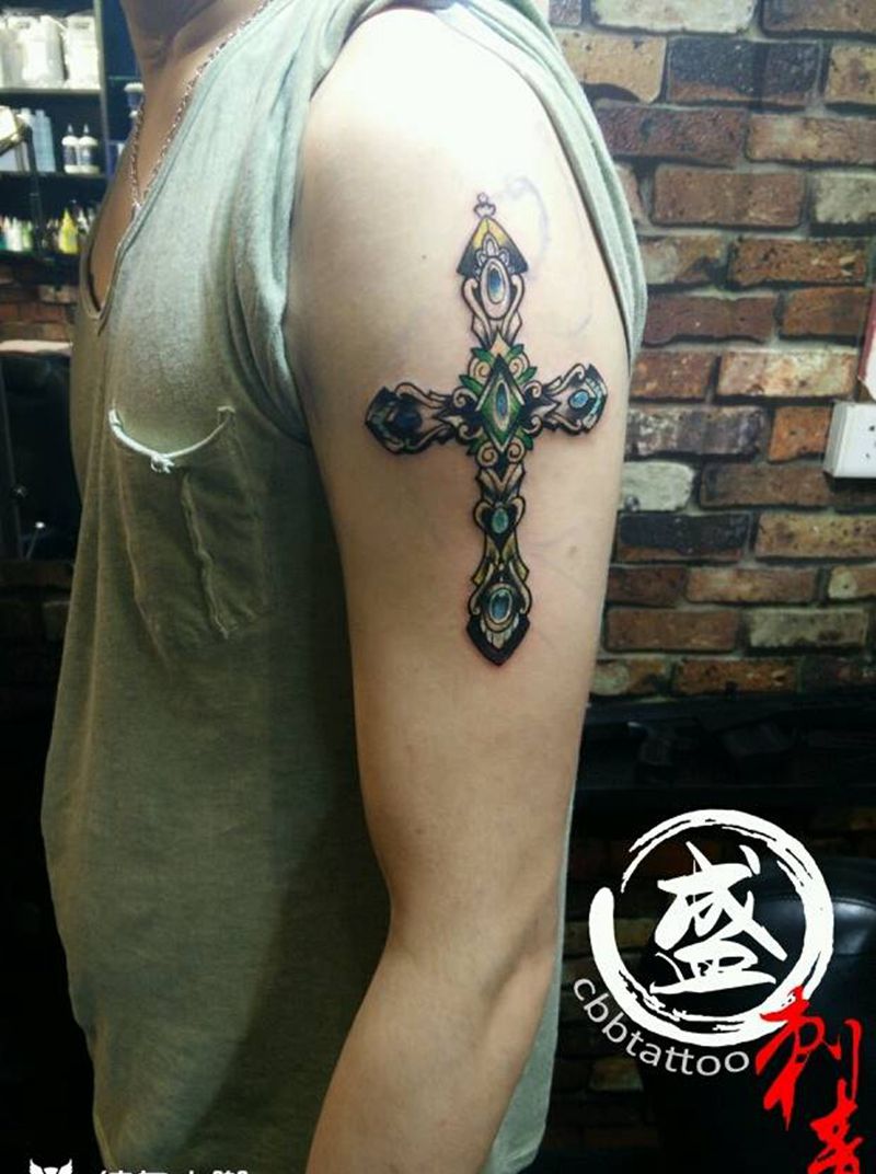 当前位置: 首页 >海南省海口市纹身店-海口盛刺青HKstattoo纹身图案>十字架纹身图片_手臂清新几何成品纹身图案