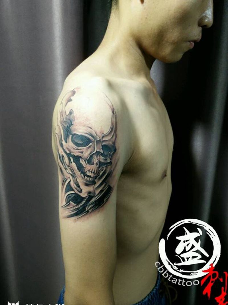 遮盖英文MYS纹身图片_手臂欧美写实鬼神成品纹身图案
