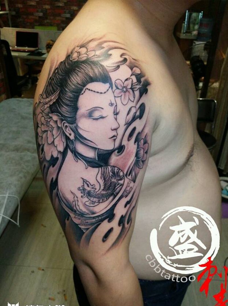 当前位置: 首页 >海南省海口市纹身店-海口盛刺青HKstattoo纹身图案>花旦纹身图片_手臂传统人物成品纹身图案