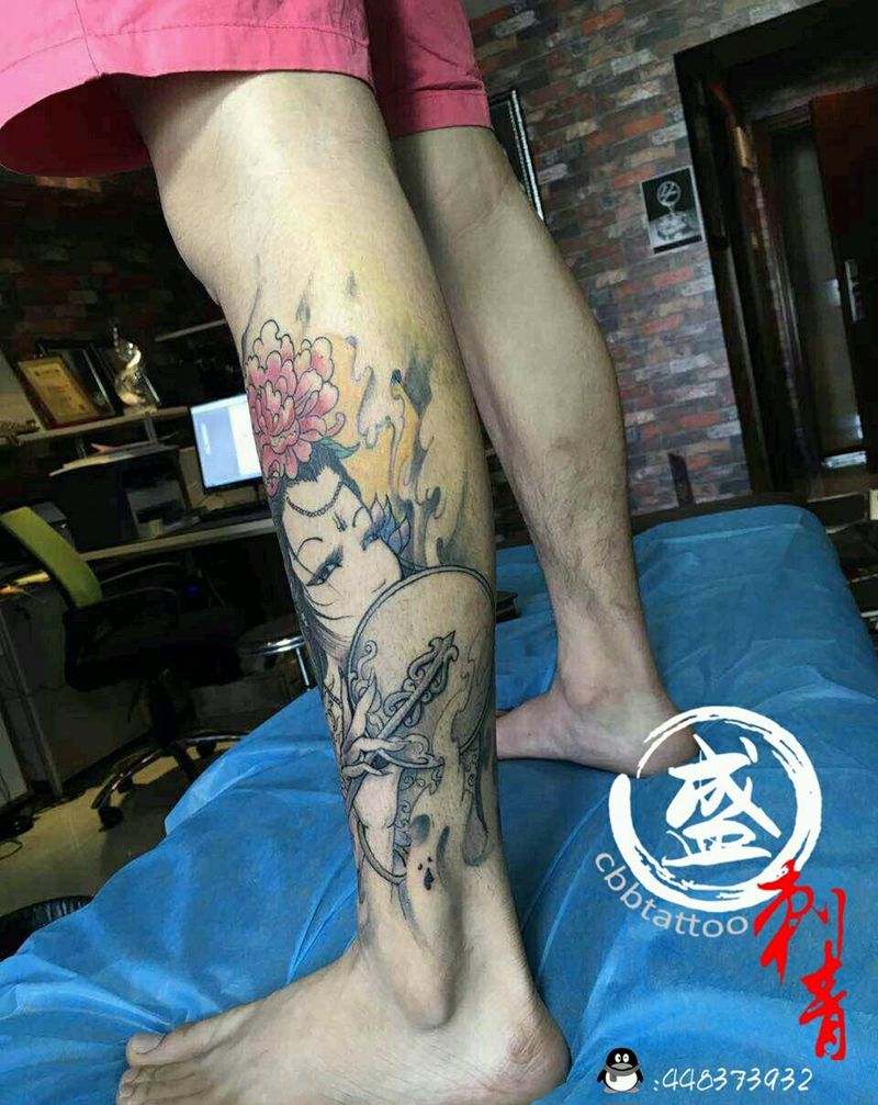 当前位置: 首页 >海南省海口市纹身店-海口盛刺青HKstattoo纹身图案>花旦纹身图片_腿部脚部传统肖像人物宗教成品纹身图案