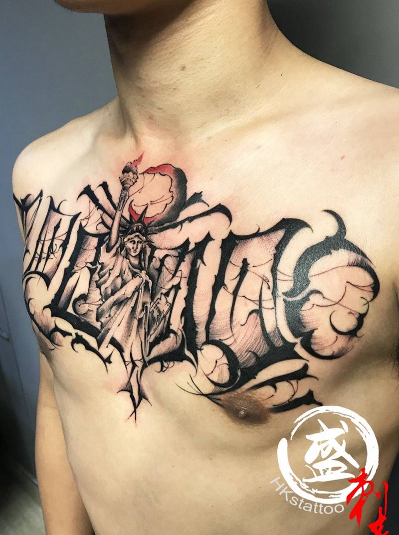 花胸花体(客人自带图)纹身图片_成品胸部欧美字符传统宗教纹身图案