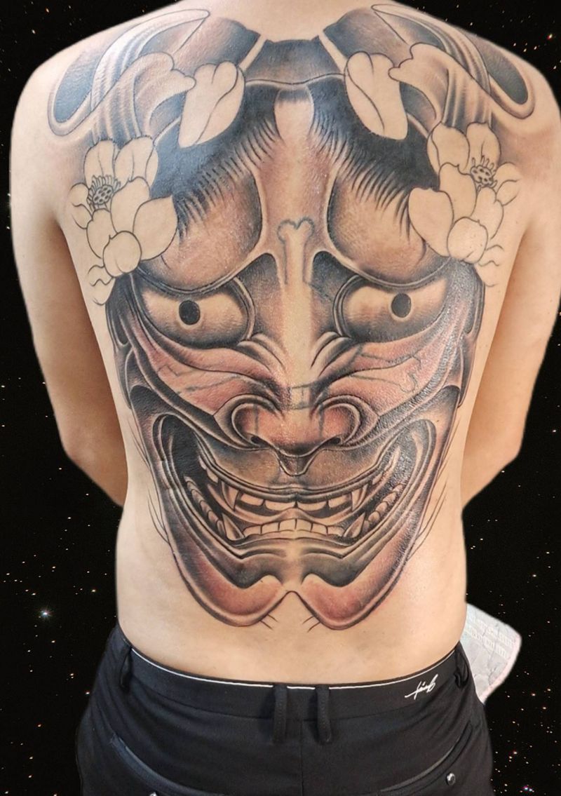 当前位置: 首页 >海南省海口市纹身店-艺莹刺青纹身图案>满背般若未完成纹身图片_背部新传统海口同城遮盖纹身图案
