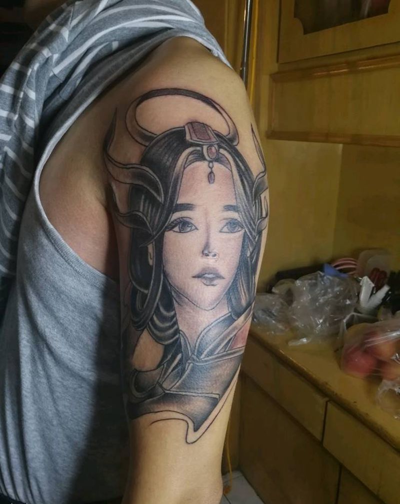 当前位置: 首页 >海南省海口市纹身店-艺莹刺青纹身图案>大臂艺妓纹身图片_肩部手臂新传统纹身图案