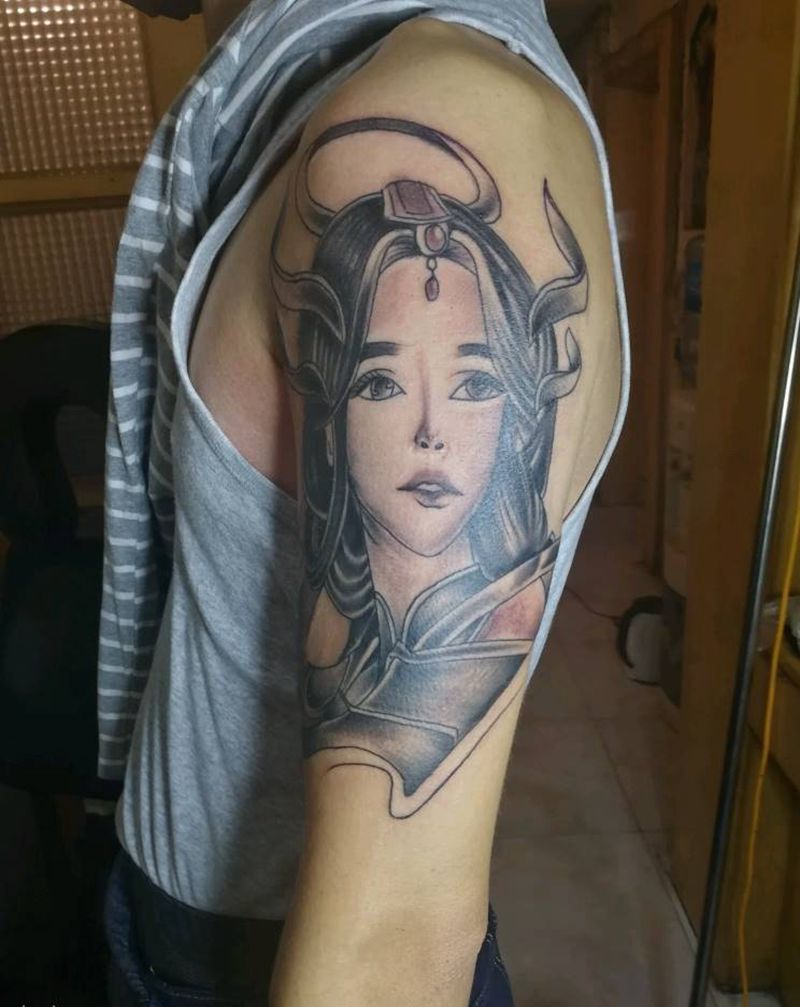 当前位置: 首页 >海南省海口市纹身店-艺莹刺青纹身图案>大臂艺妓纹身图片_肩部手臂新传统纹身图案