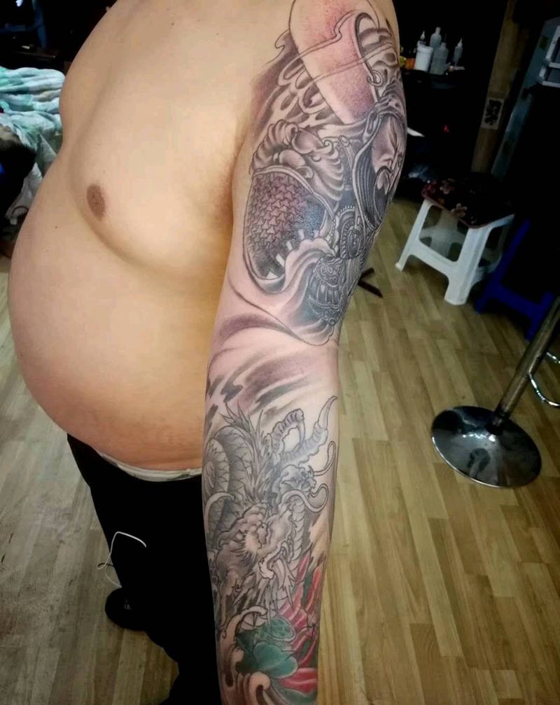 当前位置: 首页 >海南省海口市纹身店-艺莹刺青纹身图案>本店花臂作品纹身图片_手臂新传统纹身图案