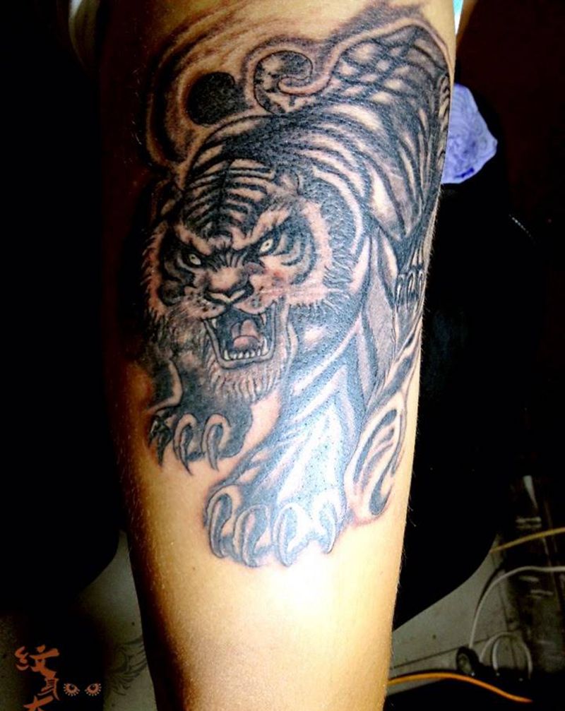 当前位置: 首页 >海南省海口市纹身店-艺莹刺青纹身图案>黑白下山虎纹身图片