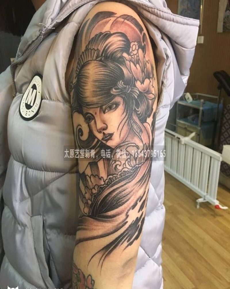 艺妓纹身图片_肩部手臂人物成品纹身图案