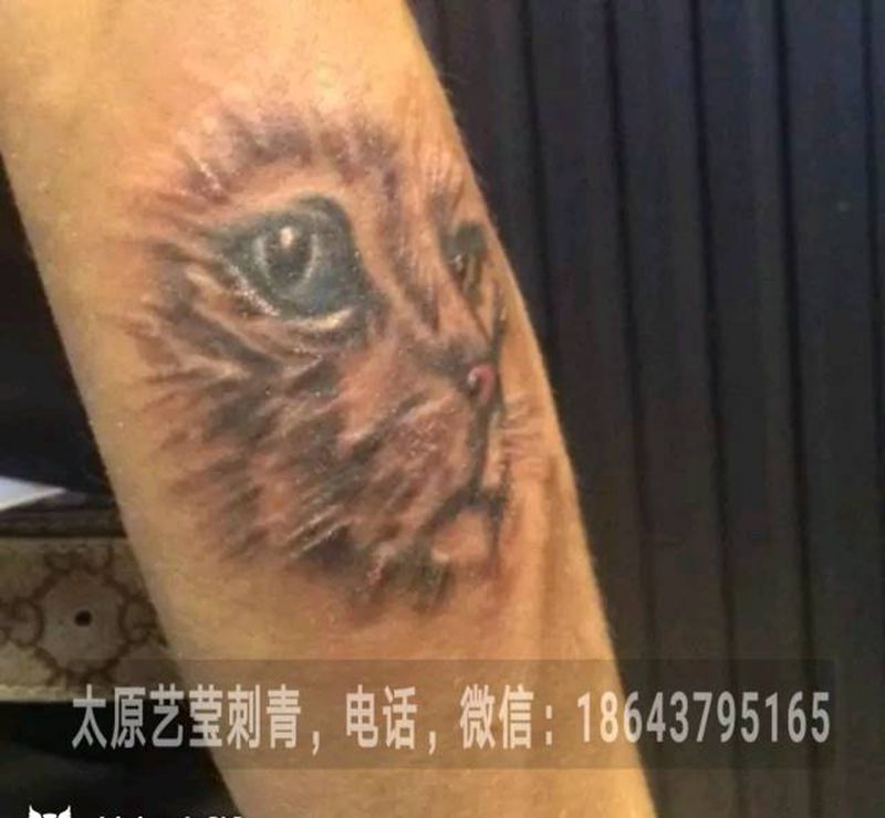 当前位置: 首页 >海南省海口市纹身店-艺莹刺青纹身图案>猫脸纹身图片_手臂欧美写实动物成品纹身图案