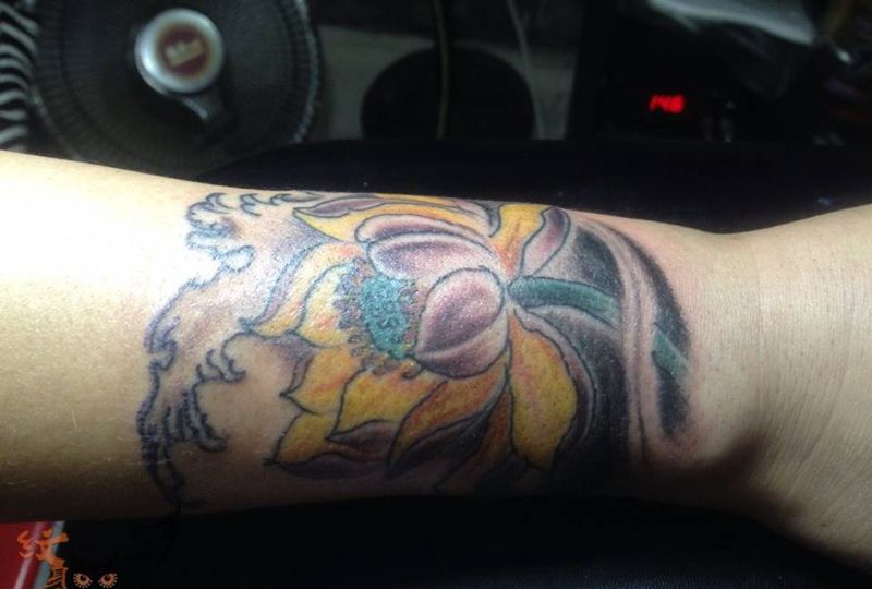 当前位置: 首页 >海南省海口市纹身店-艺莹刺青纹身图案>彩色莲花纹身图片_成品手臂传统植物纹身图案