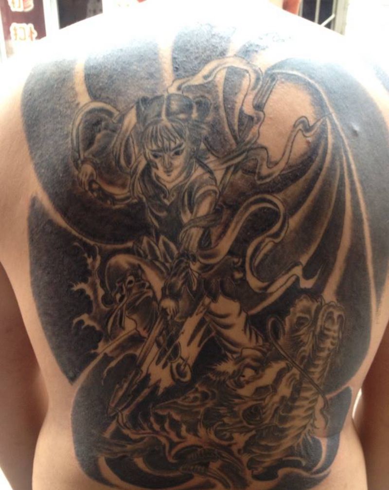 当前位置: 首页 >海南省海口市纹身店-艺莹刺青纹身图案>满背哪吒纹身图片_成品背部传统人物鬼神纹身图案