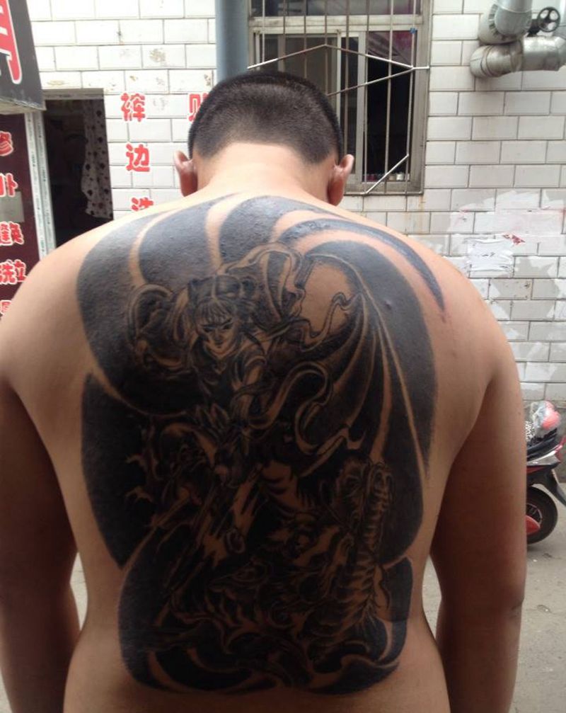黑灰满背纹身图案