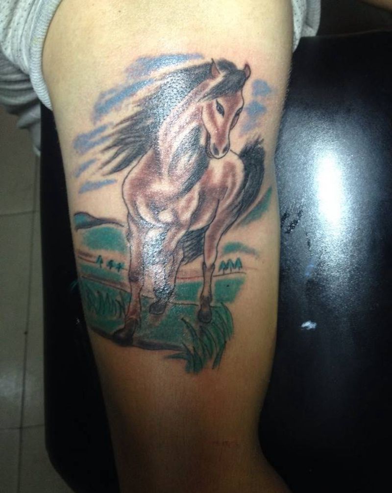 当前位置: 首页 >海南省海口市纹身店-艺莹刺青纹身图案>马纹身图片_成品手臂传统动物纹身图案
