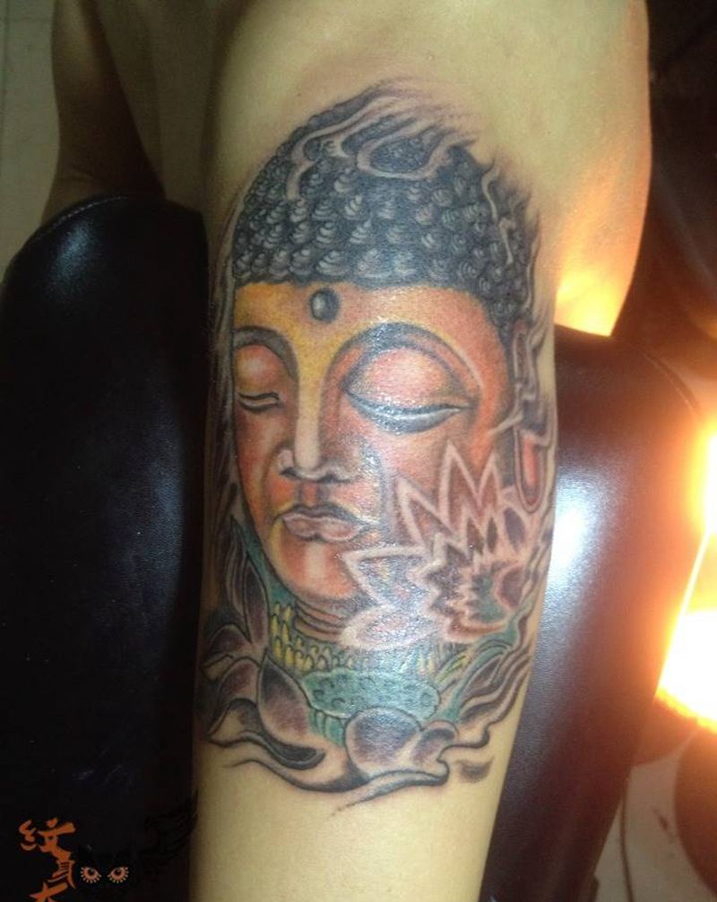 佛头纹身图片_成品手臂传统人物鬼神纹身图案
