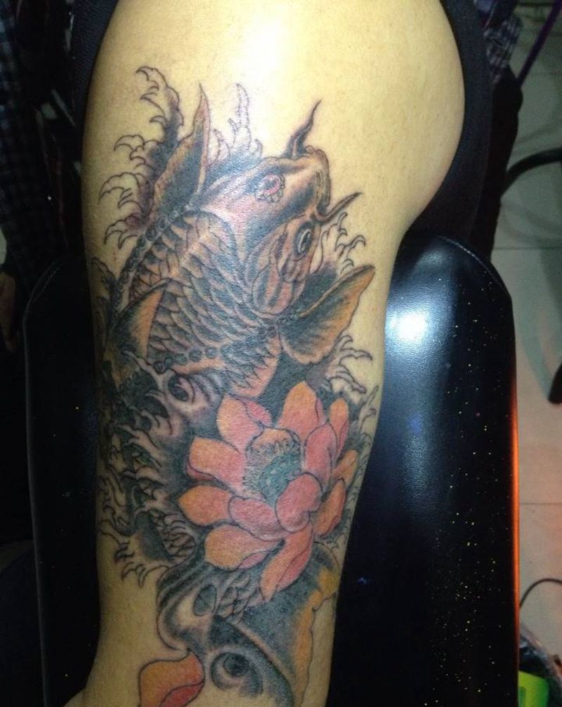 当前位置: 首页 >海南省海口市纹身店-艺莹刺青纹身图案>招财鲤鱼纹身图片_成品手臂传统动物纹身图案