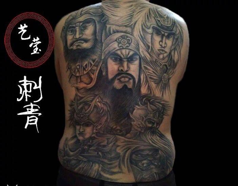 当前位置: 首页 >海南省海口市纹身店-艺莹刺青纹身图案>五虎上将纹身图片_成品背部传统人物纹身图案