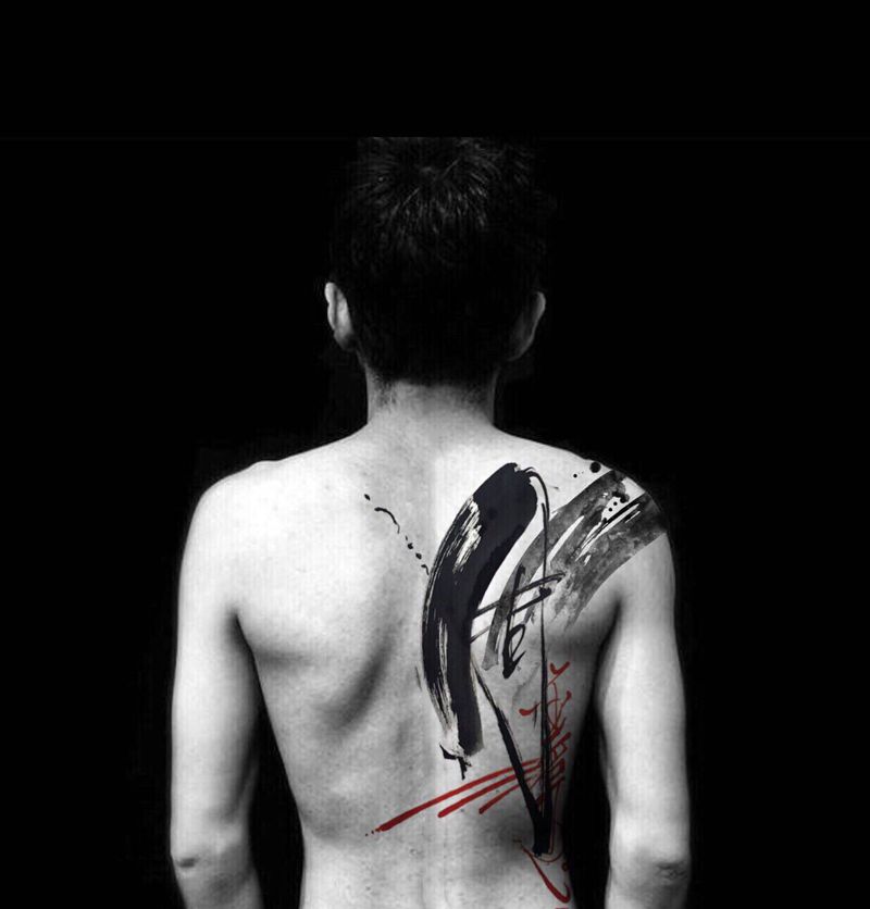 黑灰满背纹身图案