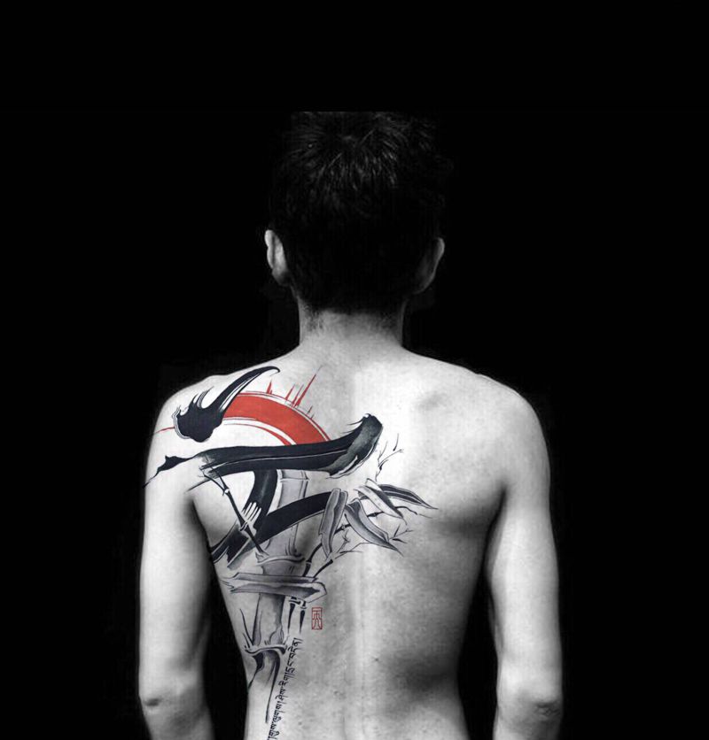 黑灰满背纹身图案