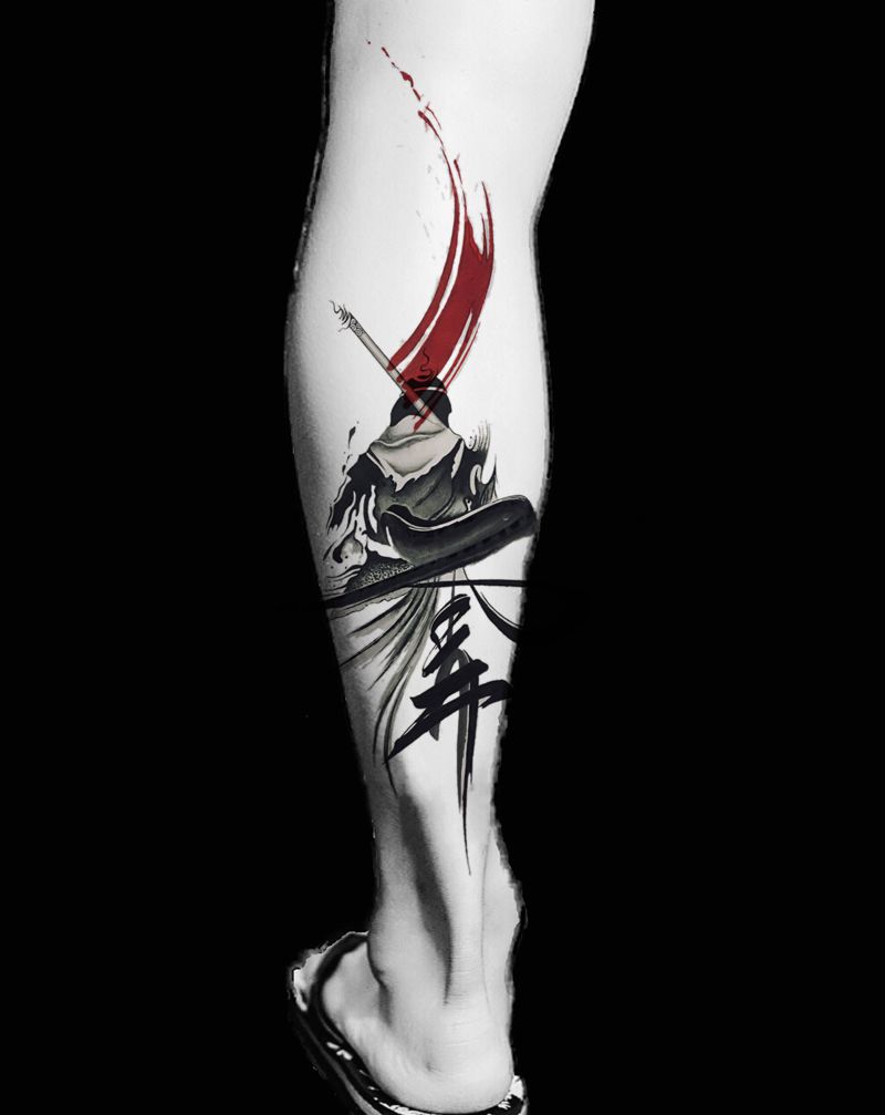 • T网红王老大花腿龙纹身图片_腿部新传统纹身图案