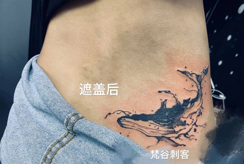 当前位置: 首页 >海南省海口市纹身店-梵谷刺客TATTOO纹身图案>遮盖鲸鱼纹身图片_背部水彩纹身图案