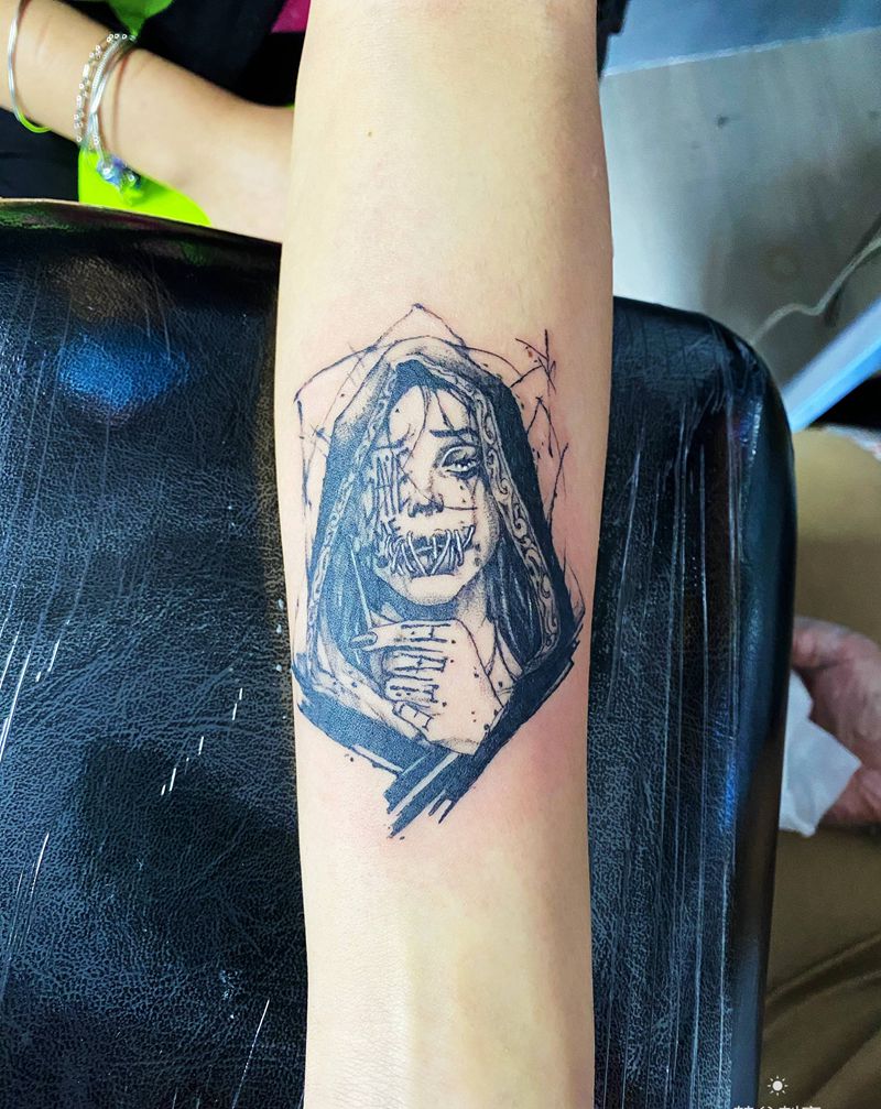 当前位置: 首页 >海南省海口市纹身店-梵谷刺客TATTOO纹身图案>暗黑修女纹身图片_手臂欧美写实纹身图案