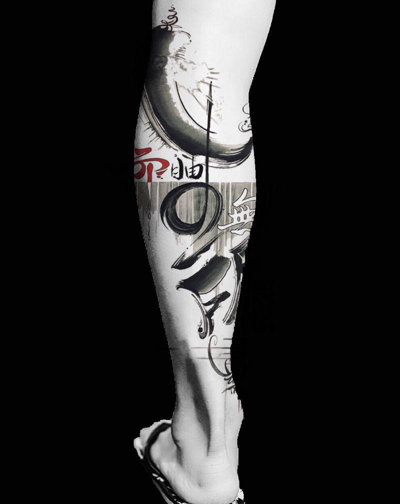 • T网红王老大花腿龙纹身图片_腿部新传统纹身图案