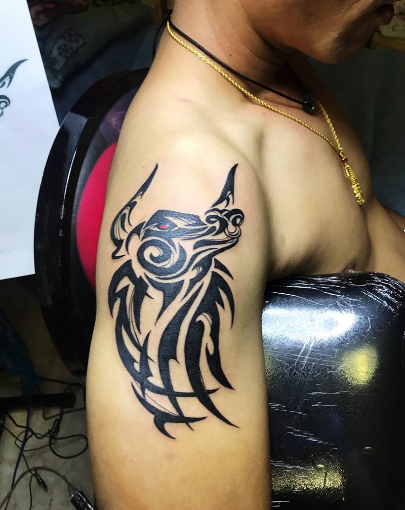 当前位置: 首页 >海南省海口市纹身店-梵谷刺客TATTOO纹身图案>牛气冲天纹身图片_手臂图腾纹身图案