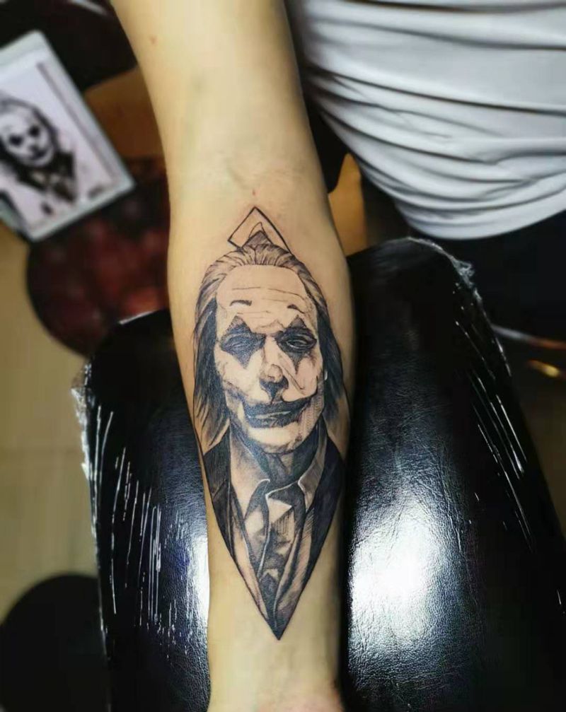 当前位置: 首页 >海南省海口市纹身店-梵谷刺客TATTOO纹身图案>小丑纹身图片_手臂欧美写实纹身图案