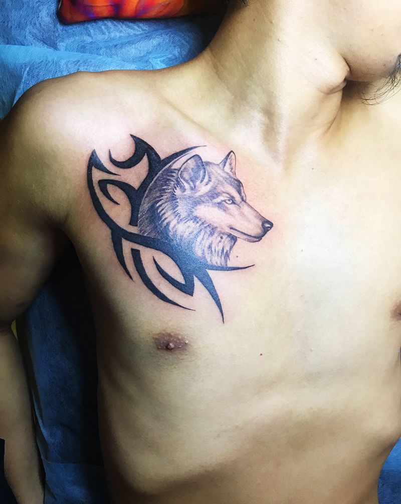 当前位置: 首页 >海南省海口市纹身店-梵谷刺客TATTOO纹身图案>狼头纹身图片_胸部图腾纹身图案